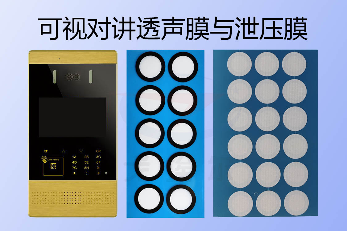 對(duì)于可視對(duì)講整體防水大多采用的是防水膠或者硅膠點(diǎn)膠實(shí)現(xiàn)殼體結(jié)構(gòu)或者屏幕防水密封,有一些會(huì)采用防水硅膠密封圈實(shí)現(xiàn)密封,在可視對(duì)講揚(yáng)聲器(喇叭)與MIC麥克風(fēng)的殼體上透聲孔位防水是貼附戈埃爾可視對(duì)講防水透聲膜材料來實(shí)現(xiàn)防水透聲的,有一些還會(huì)裝上喇叭、麥克電聲器件后會(huì)采用硅膠點(diǎn)膠工藝去密封實(shí)現(xiàn)防水。還有一些可視對(duì)講外殼上設(shè)有透氣散熱孔,然后貼裝可視對(duì)講防水泄壓膜模切加工產(chǎn)品來進(jìn)行防護(hù),可實(shí)現(xiàn)透氣泄壓與散熱降溫這一主要目的,還能實(shí)現(xiàn)防塵防水、防潮防腐蝕、壓力平衡等要求。