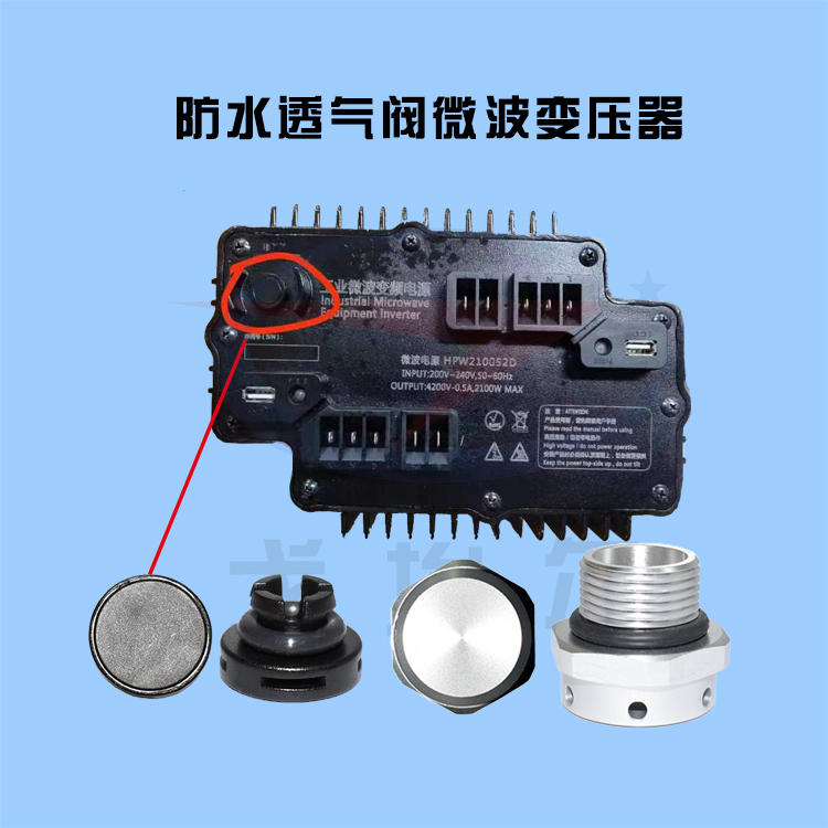 工業微波設備變壓器是微波設備能否工作的核心部件,簡稱:微波變壓器。它的工作任務是把220伏的電壓利用電磁感應的原理來提高為2300伏左右。所以也稱為升壓變壓器,其主要構件是初級線圈、次級線圈和鐵心(磁芯),安全隔離等。那么在升壓的過程中,會產生大量的熱量從而產生水蒸氣。所以在它的核心排氣孔必須使用防水透氣閥來解決防水透氣、避免灰塵、水、水蒸氣等液體通過殼體上透氣孔進入產品內的問題。